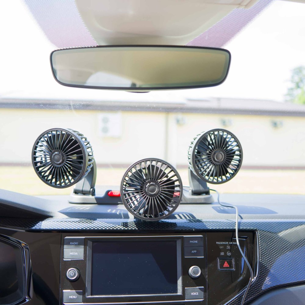 EPFAN01 je praktický trojitý automobilový ventilátor napájený 12V, ideální do osobních aut, dodávek a karavanů. Tři samostatně nastavitelné hlavy umožňují nasměrovat proudění vzduchu přesně podle potřeby a zlepšit cirkulaci v kabině zejména během horkých dnů.