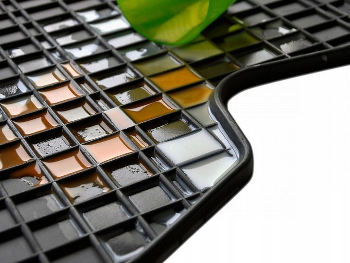 Gumové autokoberce polské firmy Frogum mají tradiční (čtverečkovaný) design, díky kterému nedochází k přelévání vody, popř. tajícího sněhu po kobercích. Okraj autokoberců je přibližně 1 cm vysoký. Autokoberce FROGUM jsou vyráběné na míru a přesně pasují do interiéru daného vozidla.