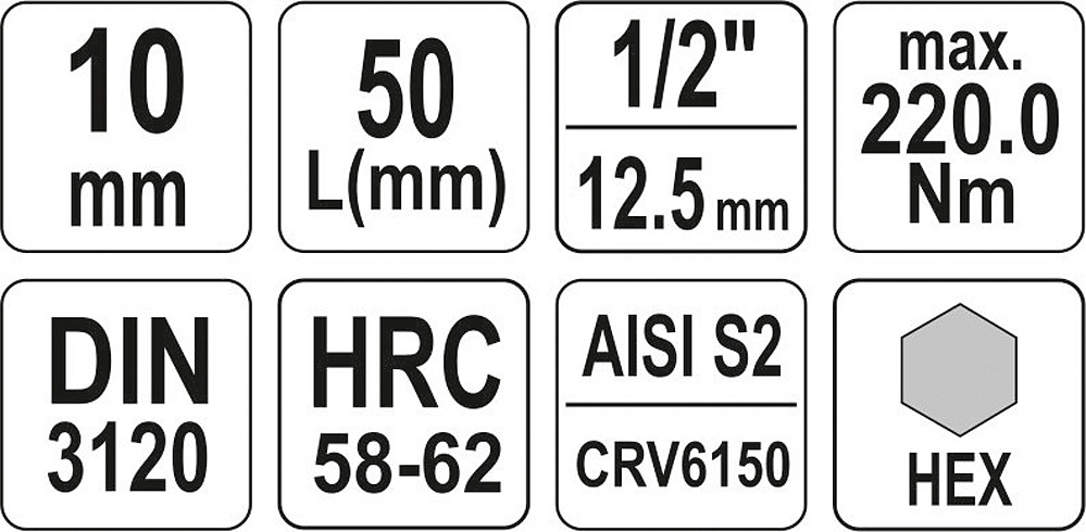 Profesionální šestihranný bit Imbus (HEX) pro 1/2" ráčnu.Nástavec je precizně a přesně zhotoven z pochromované oceli CrV6150 a samotný bit z nerezové oceli AISI S2 vrstvené niklem pro vysokou odolnost.Materiál byl podroben zkoušce tvrdosti pro tvrdé materiály podle Rockwella, s výslednou tvrdostí HRC58-62.Nepostradatelným nástrojem pro profesionály a výbavu každé garáže.Technická datavelik... Celý popis