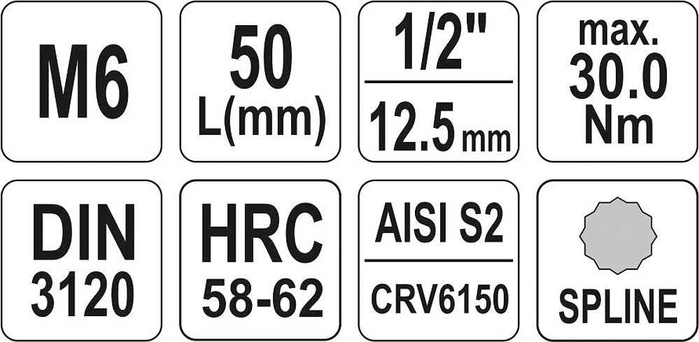 Profesionální šestihranný bit Vícezubý (SPLINE) pro 1/2" ráčnu.