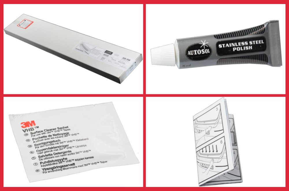 Nerezová ochranná lišta na zadní nárazník od firmy Avisa je ideální volba pro tvoje auto, protože nejen že ochrání lak na tvém voze ale také slouží jako designový prvek. Lišta je odolná vůči atmosférickým vlivům (odolává teplotám -40°C/50°C) ale také vlivům mytí (vlhkost). Není to obyčejná chromová lišta , jelikož je vyrobená z hliníku. Montáž za pomoci oboustranné pásky která je umístěná na všech čtyřech hranách.