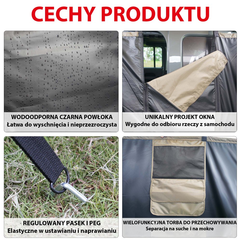 Stan je vyroben z vysoce odolného Oxford materiálu, který zaručuje dlouhou životnost a ochranu před deštěm a UV zářením. Nabízí vynikající ochranu a umožňuje pohodlné venkovní sprchování.
