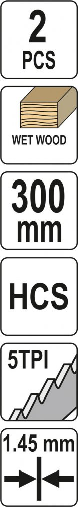 Pilové listy vhodné pro řezání dřeva.Vyrobeno z kvalitní oceli (HCS) se standartním úchytem.Různé velikosti zubů umožňují snadné a rychlé řezání.Technická data délka300mm tloušťka1,45mm rozteč zubů5 TPI sada2ks Celý popis