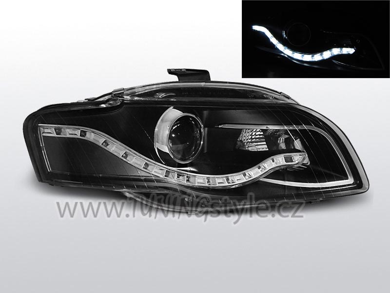 Přední světla s LED denními světly RL Audi A4 B7 05-08 černá