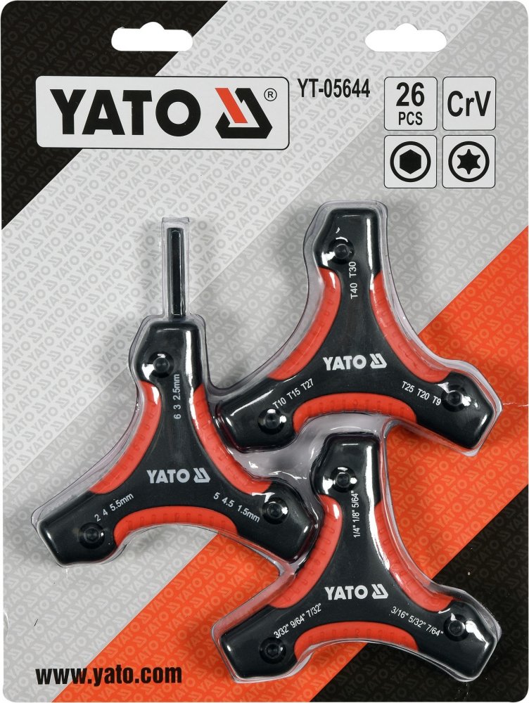 Sada 3 ks skládacích nástrojů s Hex (metrické a imperiální) a Torx klíči. Materiál vysoce kvalitní CrV ocel s černěným povrchem. Povrch těla je ergonomicky tvarován z plastu. Obsah balení: Hex 1,5; 2; 2,5; 3; 4; 4,5; 5; 5,5; 6 mm Hex 5/64"; 3/32"; 7/64"; 1/8"; 9/64"; 5/32"; 3/16"; 7/32"; 1/4" Torx T9; T10; T15; T20; T25; T27; T30; T40 Celý popis