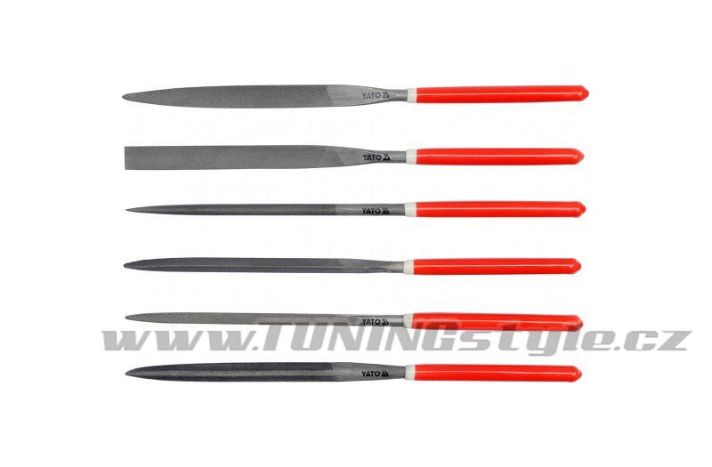 Sada 6 ks pilníků z ložiskové oceli GCR15. Celková délka jednotlivých pilníků 180 mm z nichž brusná část je 85 mm. délka (mm) 85 (pracovní část) materiál ložisková ocel GCR15 rozměry (mm) 5x180x85 Celý popis