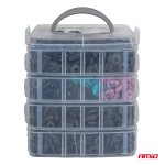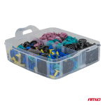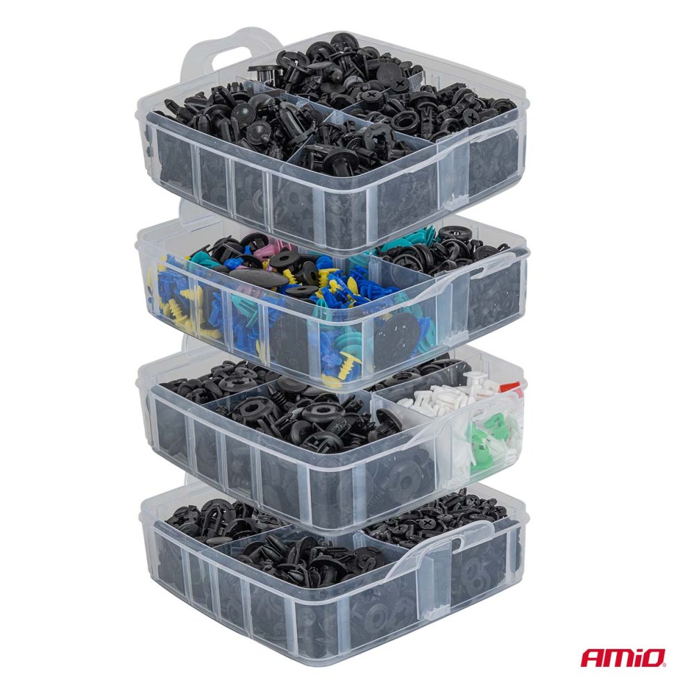 Součásti jsou vyrobeny z vysoce kvalitního plastu, odolného vůči deformaci, praskání a povětrnostním vlivům. Ocelové nástroje zajišťují pohodlí a bezpečnost při práci. Tento produkt je nezbytným vybavením pro profesionální automobilové dílny, karosárny a lakovny a zkušené kutily. Vlastnosti produktu: Počet součástí: 1211 spon a čepů + nástroje a stahováky Typy: spony, montážní čepy + stahováky... Celý popis