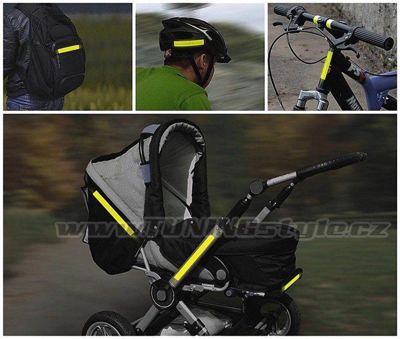 Výstražný reflexní doplněk k nalepení, dobře viditelný na velkou vzdálenost. Ideální k nalepení na kočárek, kolo, dětskou tříkolku, školní brašnu, na helmu či jiný předmět.