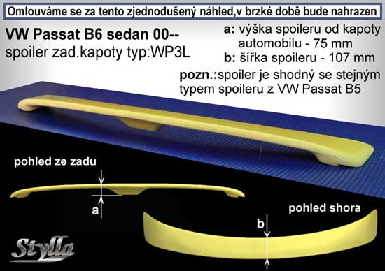 »  Exteriér  »  Nárazníky a spojlery  »  Křídla, stříšky, spoilery  »  Spoiler zadní kapoty 3-body, křídlo Stylla VW Passat 3BG/B5 sedan 00-04