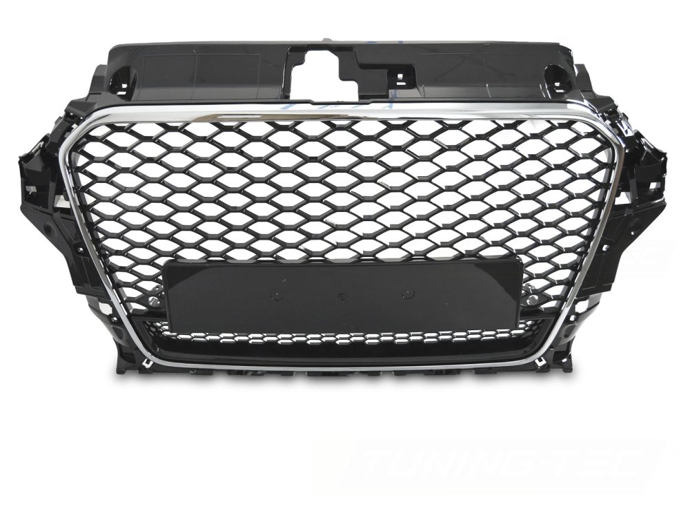 »  Exteriér  »  Nárazníky a spojlery  »  Masky a mřížky  »  Sportovní maska pro AUDI A3 8V 2012-2016 PDC RS quattro style - černá lesklá / chrom
