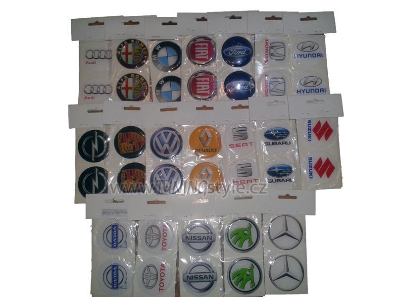 plastické 3D samolepky na kryty kol (poklice) nebo středů kol.